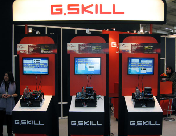 Desweiteren zeigte G-Skill die PK DDR3-1333 CL7 Serie, die Trident DDR3-2000 CL9 Serie, TK DDR3-1600 CL7, G.Skill NQ DDR3 1600 CL9 Module und einige weitere Kits mit und ohne Heatspreader.