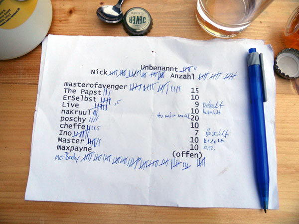Die Thüringer Bratwürstchen Liste von unserem Moderator Postguru sah bereits nach einigen Grillstunden ziemlich ulkig aus …