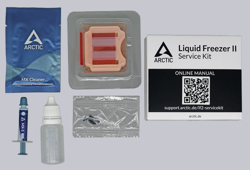 Ist die eigene Wasserkühlung betroffen, bietet Arctic an, den Austausch der Teile im Werk vorzunehmen. Dazu muss man seine Wasserkühlung jedoch einschicken und mit ca. 1-2 Wochen Wartezeit rechnen, bis man die Wasserkühlung umgebaut zurückerhält. Wer nicht so lange warten möchte und sich den Umbau selbst zutraut, kann sich das Liquid Freezer II Service Kit mit allen nötigen Bestandteilen kostenfrei zusenden lassen. Genau das haben wir gemacht und zeigen in der folgenden Anleitung, dass der Tausch der Dichtung und der Cold Plate gar nicht so schwierig ist, wie man vielleicht vermutet. Einerseits zeigen wir eine detaillierte Schritt für Schritt Anleitung mit Bildern und nützlichen Hinweisen in schriftlicher Form, andererseits haben wir den AIO Umbau auch auf Video festgehalten und auf unserem OCinside.de YouTube Channel hochgeladen.