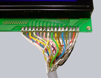 So wird das Kabel an das invertierte 20×4 Zeilen Display angelötet …