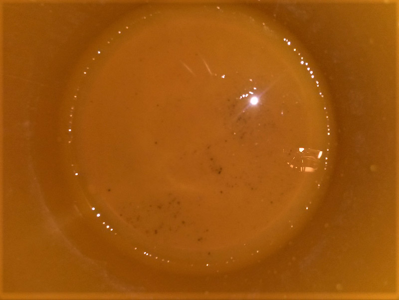 Again we left the coolant in a small bucket. The many small black impurities, which of course have nothing to do with water cooling, are easy to recognize.