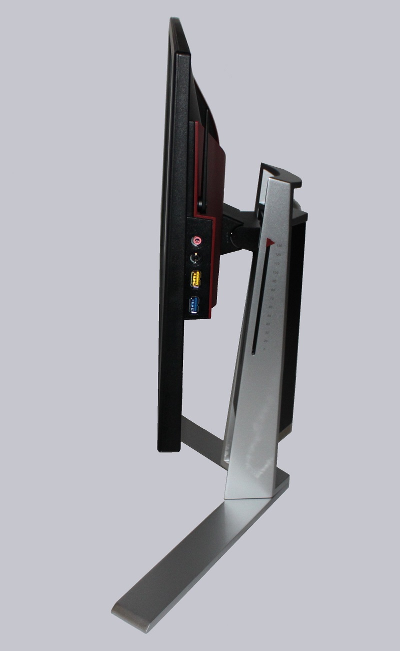 The sight alone is intended to suggest to the user that this monitor is only for one purpose on the desk … Gaming! And it may not be a coincidence that the monitor’s colors are those of a famous sports car! Thanks to the puristic design of the stand …