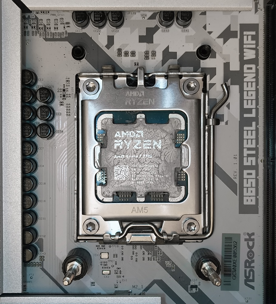 We then checked whether the paste had been distributed correctly – all three pastes worked perfectly. In this example, we had applied a little too much WLP, which then oozed out too much at the edges, but this did not affect the cooling performance.
