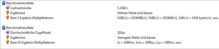 Zum Vergleich kann man mit dem Mousezeiger über folgende Laufwerke gehen, um die jeweiligen Benchmarkwerte zu sehen: