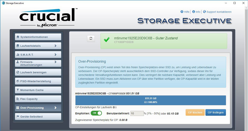 It also allows you to set the Over Provisioning range to adjust the SSD durability vs performance …