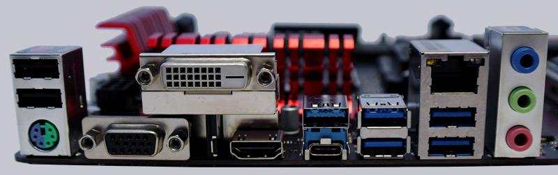 | Connectors | ++++ 4x SATA3 + 2x SATA3 (ASMedia ASM1061), 1x Ultra M.2, 1x M.2, 1x PS/2, 1x TPM, 1x 10/100/1000 Mbps base-T Ethernet (Realtek RTL 8111GR), 1x USB 3.0 Type-C, 7x USB 3.0 Type-A (2x of them internal, slot bracket for additional ports is not included), 6+1x USB 2.0 (4x of them internal, slot bracket for additional ports is not included), 8-Channel Realtek ALC892 onboard 7.1 sound with 3x 3.5 mm connectors (ext. Line in, ext. Mic, ext. Front out), 1x DVI-D, 1x D-Sub, 1x HDMI and 4x fan (4x 4Pin). |
