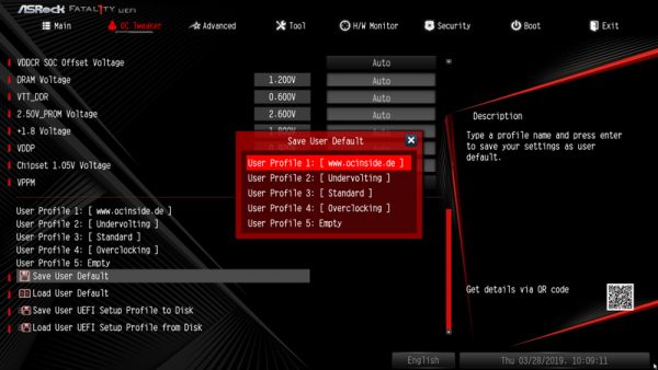 For example, you could store a balanced BIOS setting, overclocking settings and undervolting values or Office and gaming settings as a user profile, so that you can quickly reload these values at any time.
