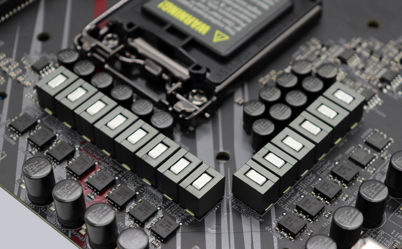 In total ASRock uses 12 CSD 87350D MOSFETs or NexFETs as VRM on the 60A coils.