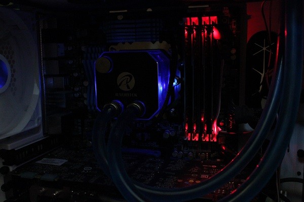 After the first power-on we were amazed that the cooler has a white LED within the integrated pump, which illuminates the unit. Even on the box or inside the manual there is no hint that the pump is illuminated.