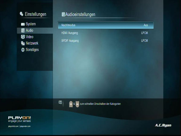 Setup und Einstellungen des AC Ryan ACR-PV73700 Playon!HD2 Mediaplayers …