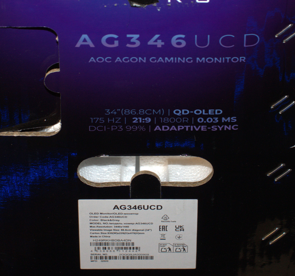Selbstverständlich liegt auch der AOC Agon AG346UCD gut verpackt im Karton.