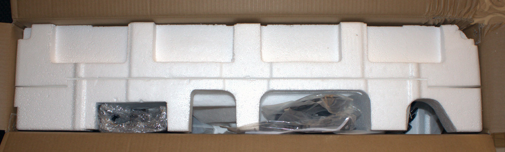 Geliefert wird der Monitor in diesem doch recht üppigen Karton, der satte 14,3 kg auf die Waage bringt.