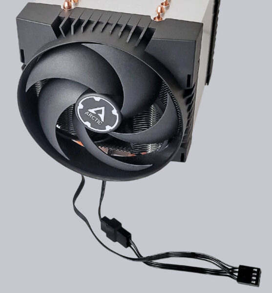 Bei den Lüftern setzt Arctic auf ein proprietäres Design, um den vorhandenen Platz optimal auszunutzen, aber das Lüfterblattdesign stammt von der bestens bewährten P-Serie. Um die Kühlleistung zu steigern, erhöhte Arctic die maximale Drehzahl auf 2300 U/min, denn die Lautstärke ist im Serverbereich kein sonderliches Kriterium. Beim Einsatz in einer Workstation am Schreibtisch kann man gegebenenfalls mit dem Lüftertuning das persönlich optimale Verhältnis aus Kühlleistung und Lautstärke selbst festlegen.