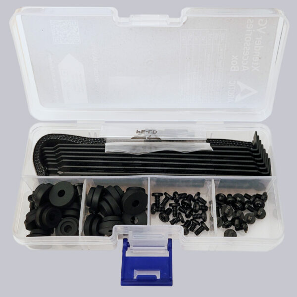 Das Montagezubehör befindet sich fein säuberlich sortiert in einer praktischen Kunststoffbox.