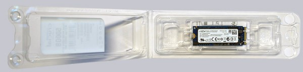In dieser Verpackung wurde die kleine Crucial MX200 500GB M.2 SSD geliefert: