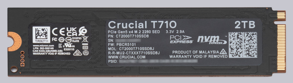 Die T710 M.2 SSD ist ausschließlich im 2280 Format mit oder ohne Kühlkörper erhältlich und stellt das aktuelle Consumer Topmodell von Crucial dar. Sie ist die direkte Nachfolgerin der T700 und der T705, wobei die T700 die erste Gen5 SSD war, die Crucial 2023 im Desktopbereich auf den Markt brachte. Mittlerweile bietet Crucial mehrere Gen5 Modelle an, die sich hauptsächlich in Performance und Strombedarf unterscheiden und somit verschiedene Zielgruppen ansprechen. Die T710 ist für Hochleistungs-Desktop-PCs und Laptops gedacht, eignet sich aber auch für den Einsatz in einer PS5, wo sie jedoch durch die Hardware der PS5 auf Gen4 begrenzt wird.