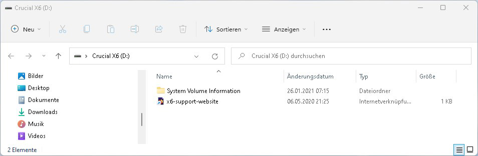 Auf dem Laufwerk befindet sich übrigens gleich ein Link zur Crucial X6 Support Webseite.