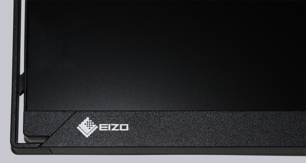 Es stört unserer Ansicht nach doch etwas die an sich schlicht-schöne Optik des Monitors, aber es ist mal etwas anderes. Am unteren Rand finden wir dann das EIZO Logo.