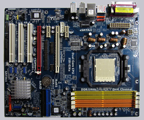 Zu der Ausstattung gehören neben 7.1 Surround Sound über sechs Klinkenbuchsen, zwei 8x PCI Express Slots, drei PCI Slots und vier DDR2 Slots auch jede Menge Zubehör bei dem flotten Sockel AM2 Board. Wer mit einem gewöhnlichen 100 MBit LAN Anschluss aufgrund seiner 100 MBit Switch auskommt, kann bei diesem Board durchaus ein gutes Schnäppchen machen und der Windows Vista Zukunft gelassen entgegensehen.