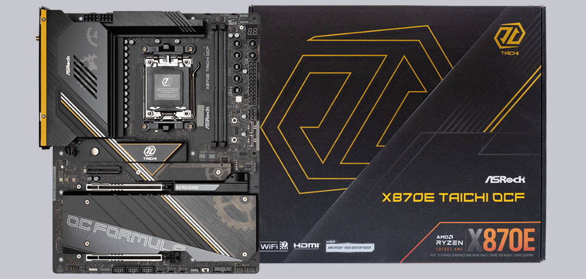 Heute testen wir auf OCinside.de ein ganz besonderes Mainboard. Das neue X870E Taichi OC Formula AM5 Mainboard von ASRock bietet eine Ausstattung vom Allerfeinsten und wurde zudem auf höchstmögliche Übertaktung getrimmt. Für beste Signalqualität verfügt das Mainboard über lediglich 2 DIMM Slots, bietet jedoch bis zu sechs M.2 SSDs ein Zuhause und verfügt über zwei USB4 Ports und Wi-Fi 7. Außerdem wurde das X870E Taichi OCF für den Betrieb auf einem Bench-Table optimiert, weshalb es über etliche Buttons und Funktionen verfügt, die man sonst nicht auf Mainboards antrifft. Wie sich das X870E Taichi OCF im Alltag verhält und welchen Mehrwert die OC-Features bieten, verrät natürlich unser ausführlicher Test hier auf OCinside.de!