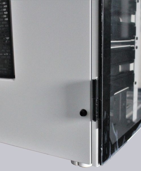 Das Thermaltake Level 20 HT Snow Edition hat einen weißen Grundton, es gibt das Gehäuse aber auch in schwarz. Fangen wir bei unserem Rundgang doch mit den Glaselementen an: Die seitlichen Glasscheiben lassen sich wie Türen öffnen.